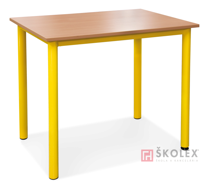 Nezničitelné stoly s kovovou konstrukcí, barevností přizpůsobené pro malé děti. Všechny nohy rektifikovatelné. Pro lehčí manipulaci s nimi je možné doobjednat kolečka.
