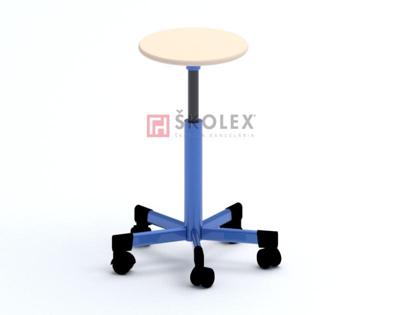 Kovová konštrukcia z rúrkového profilu, so spodným päťramenným krížom z plochooválneho profilu s kolieskami, lakovaná práškovými farbami (komaxit), výber zo vzorkovníka RAL. Sedák je vyrobený z materiálu MDF. Stolička je výškovo nastaviteľná pomocou vsadenej skrutkovice.
