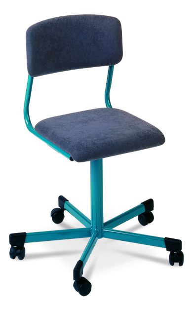 Kovová konstrukce z odlehčeného trubkového profilu, se spodním pětiramenným křížem z plochooválu s kolečky, lakovaná práškovými barvami (komaxit), možnost výběru z RAL vzorníku. Sedák a opěrka z celobukové tvarované překližky, čalouněné otěruvzdornou šedou látkou. Sedáky a opěrky jsou přinýtované ke konstrukci ocelovými nýty průměru 5 mm. Židle nejsou výškově nastavitelné, otočné pouze přes kolečka. Velikosti č. 6 (výška sedáku 46 cm).