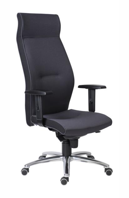 Extra vysoký opěrák, ergonomické tvarování sedáku a opěráku, čalounění ze studené pěny, synchronní mechanismus ZEP s nastavením síly protiváhy, aluminiová leštěná báze, kolečka s gumovou obručí pro všechny typy podlah, zakomponované 3D područkami - výškově nastavitené, s měkkou dotykovou plochou, 2 rozměry hloubky sedáku. Nosnost 160 kg, záruka 60 měsíců, český výrobek. Látka kategorie BN.
