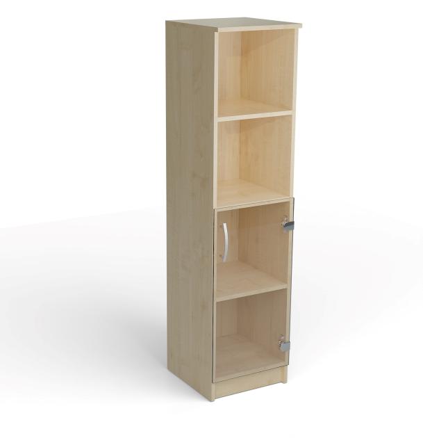 Skříňka středně vysoká 4R policová skl. dvířka úzká