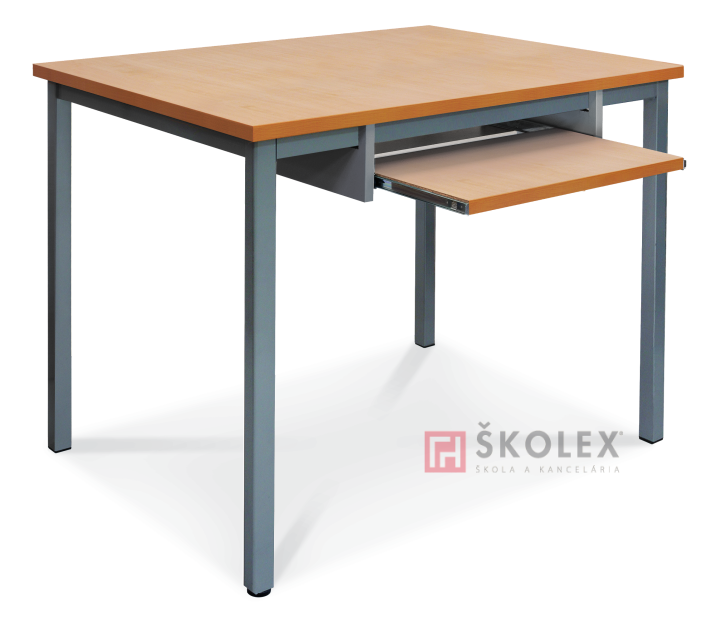 Počítačový stůl jednomístný/dvoumístný, kovová konstrukce čtvercového profilu 35x35 mm, lakovaná vypalovacími práškovými barvami (výběr dle RAL vzorníku). Nohy stolu jsou ukončeny plastovými koncovkami, u jedné nohy je navíc stavitelný šroub na ustavení stolu do stabilní polohy. Laminovaná dřevotřísková deska tl. 18 mm, povrch melamin, hrany desky stolu jsou chráněny 2 mm ABS hranou. V základném provedení bez výsuvu a PC boxu. Doplňkové vybavení (za příplatek) - výsuv pro klávesnici a PC box.